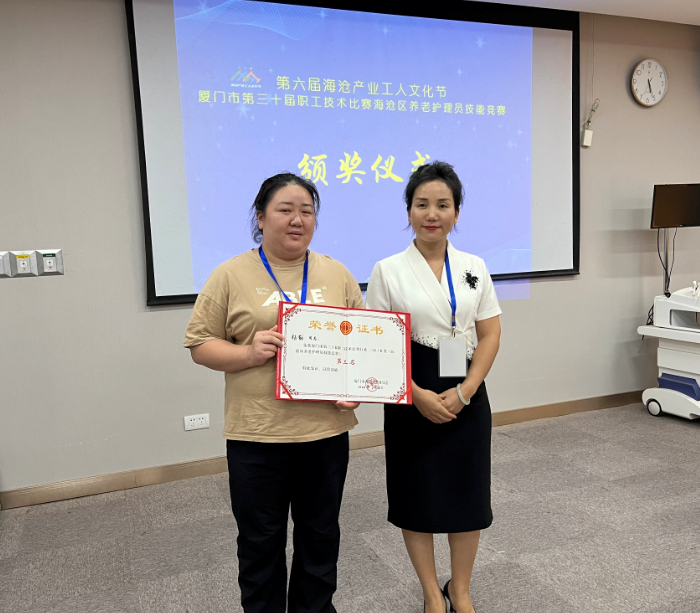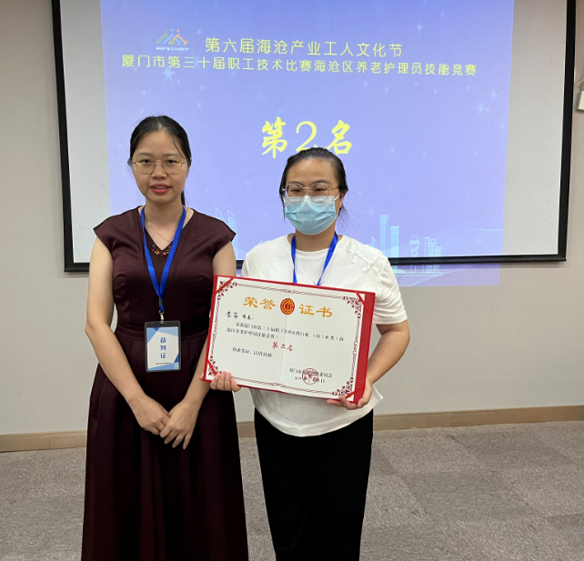 展技能风采,扬工匠精神。7月16日,以“细心呵护,专业服务”为主题的第六届海沧产业工人文化节厦门市第30届职工技术比赛海沧区养老护理员技能竞赛在厦门长庚医院成功举办。本次竞赛共有9家海沧区的养老护理品牌的30多名养老护理员报名参赛,本项赛事由厦门市海沧区总工会、厦门市海沧区妇女联合会联合主办,厦门娘子军家政服务有限公司承办,厦门长庚医院、厦门市新阳养老院、厦门市海沧区渐美村零工驿站协办。