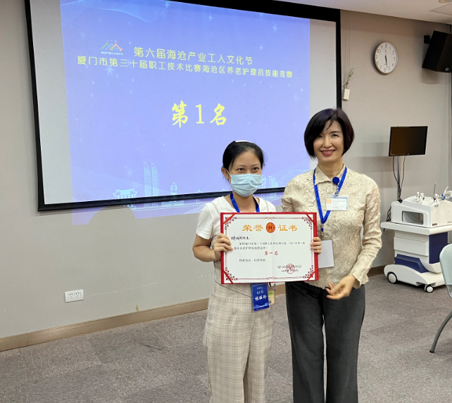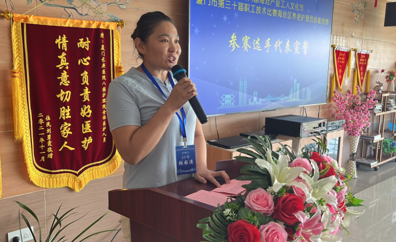 展技能风采,扬工匠精神。7月16日,以“细心呵护,专业服务”为主题的第六届海沧产业工人文化节厦门市第30届职工技术比赛海沧区养老护理员技能竞赛在厦门长庚医院成功举办。本次竞赛共有9家海沧区的养老护理品牌的30多名养老护理员报名参赛,本项赛事由厦门市海沧区总工会、厦门市海沧区妇女联合会联合主办,厦门娘子军家政服务有限公司承办,厦门长庚医院、厦门市新阳养老院、厦门市海沧区渐美村零工驿站协办。