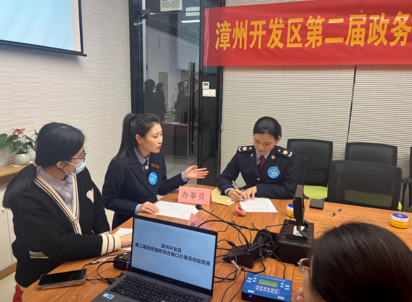12月24日,漳州开发区第二届政务服务综合窗口办事员技能竞赛在政务服务中心一楼成功举办,全区近60名政务服务工作人员参与本次竞赛。本次竞赛由漳州开发区总工会主办,漳州开发区行政审批管理局承办,厦门智帮企业管理咨询有限公司策划和执行。漳州开发区管委会主任助理、人事劳动局、行政审批管理局局长甘朝伟参加活动并致辞,漳州开发区党委委员、管委会副主任、总工会主席金彦云先生出席开幕式并宣布比赛开始。